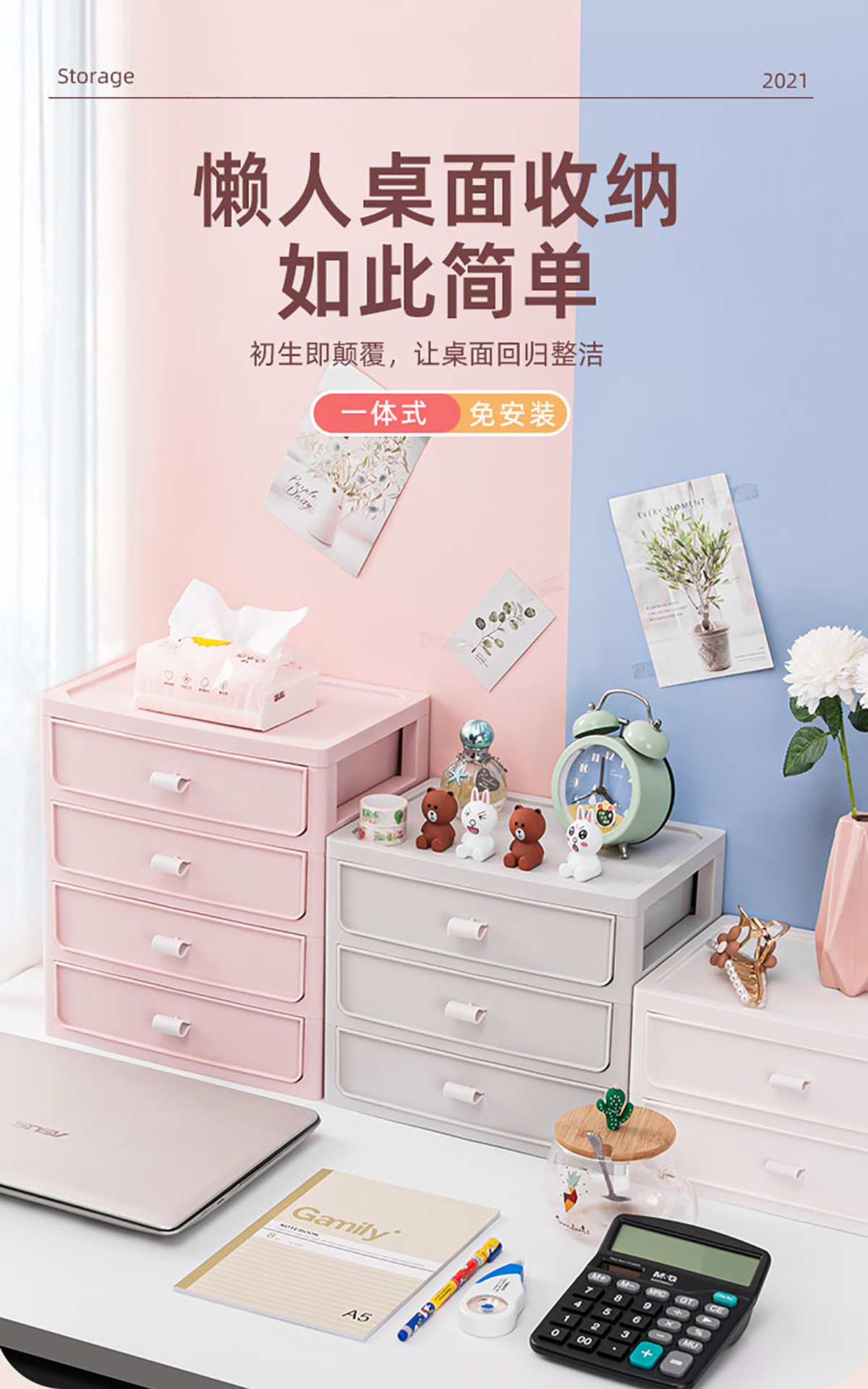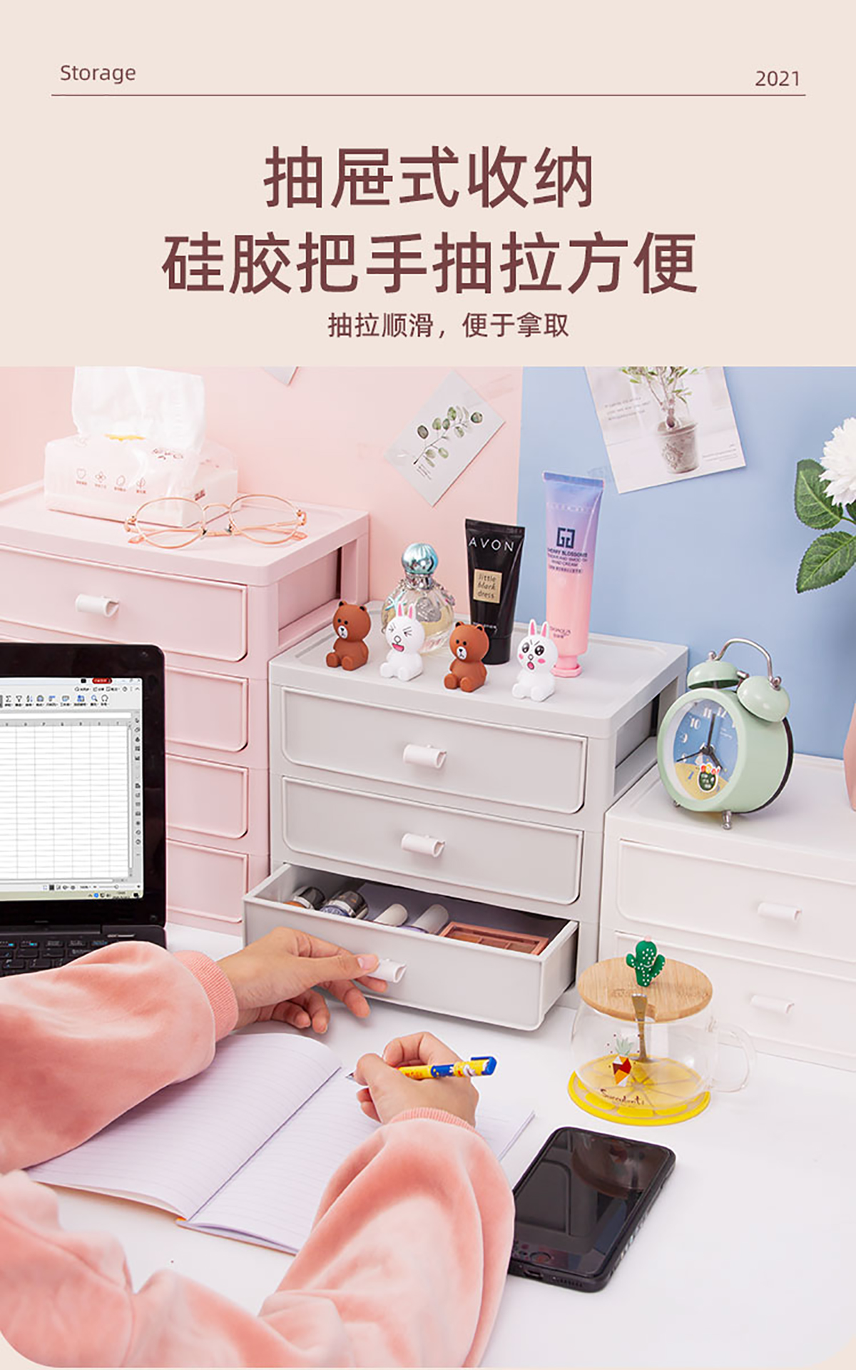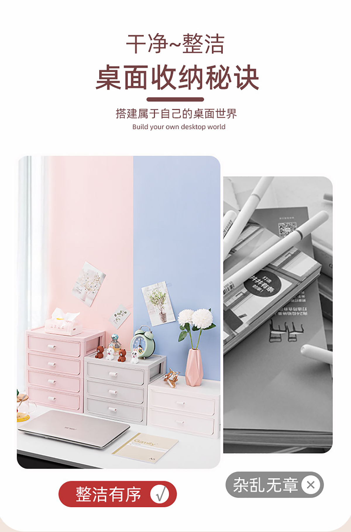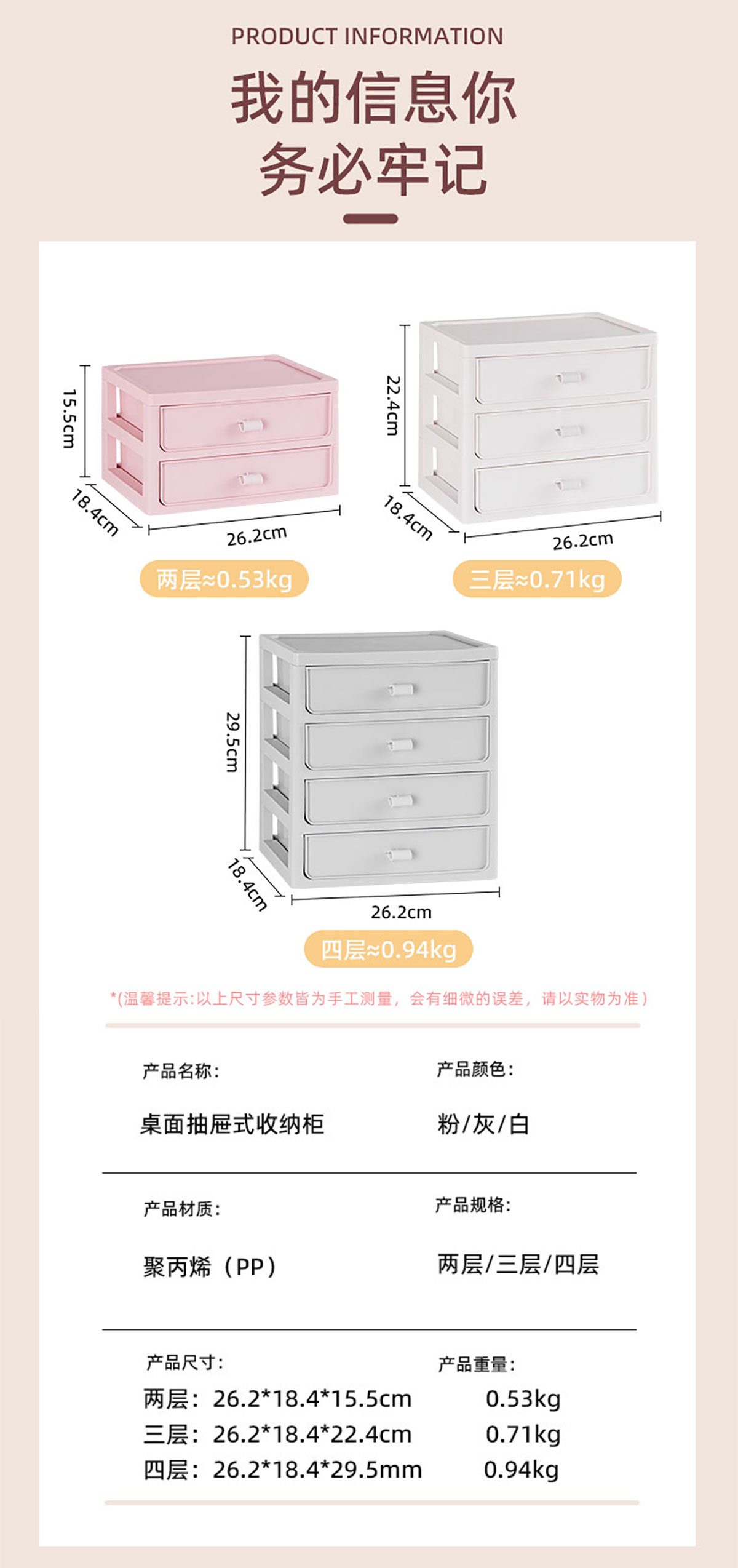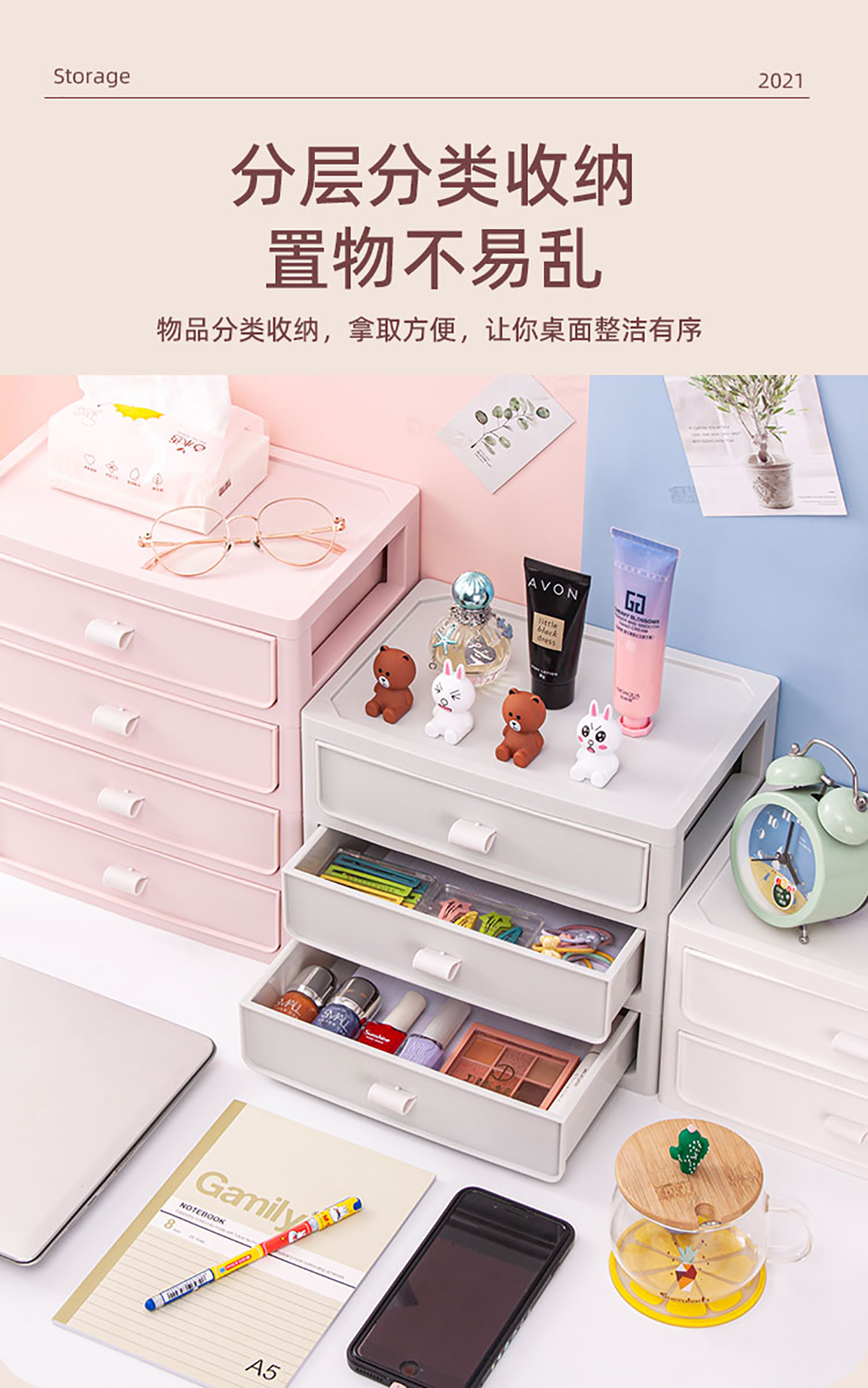 桌面收納柜(二/三/四層)+化妝品收納盒 實色款