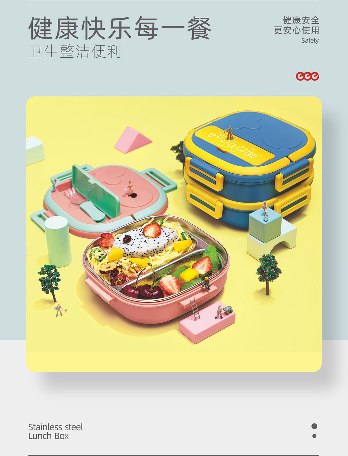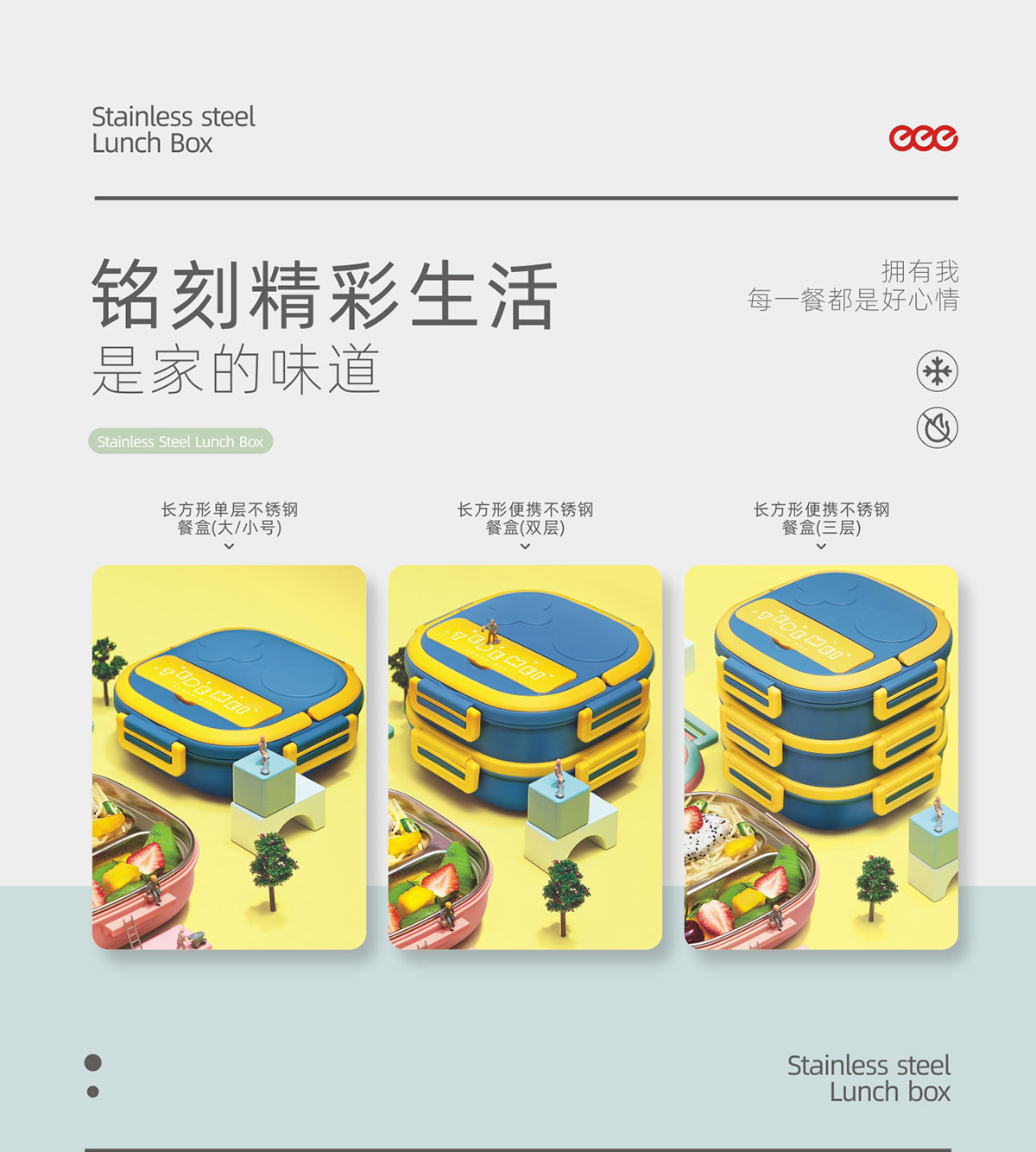 童趣不銹鋼單層(兩格/三格)/多格(/雙層/三層)餐盒
