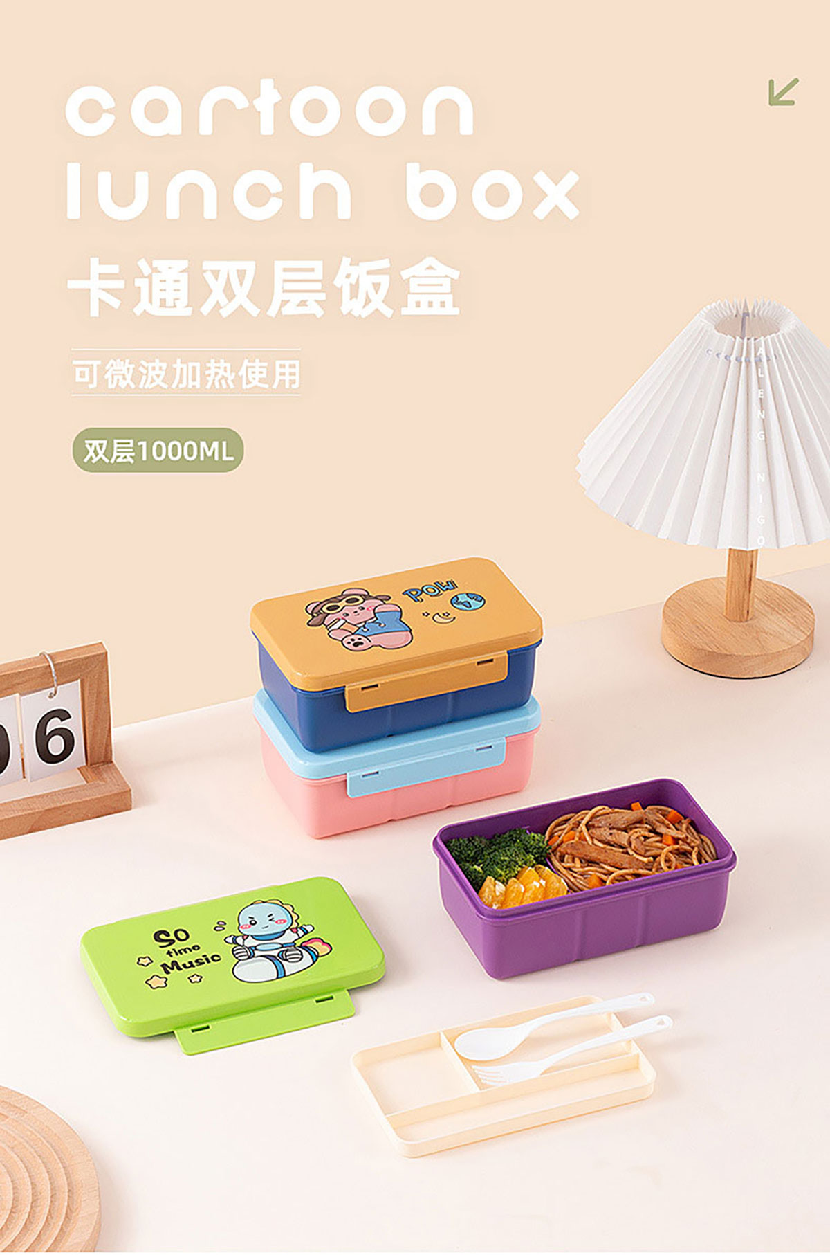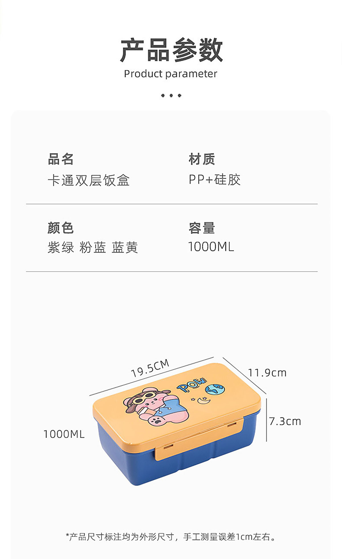 卡通雙層飯盒1000ml