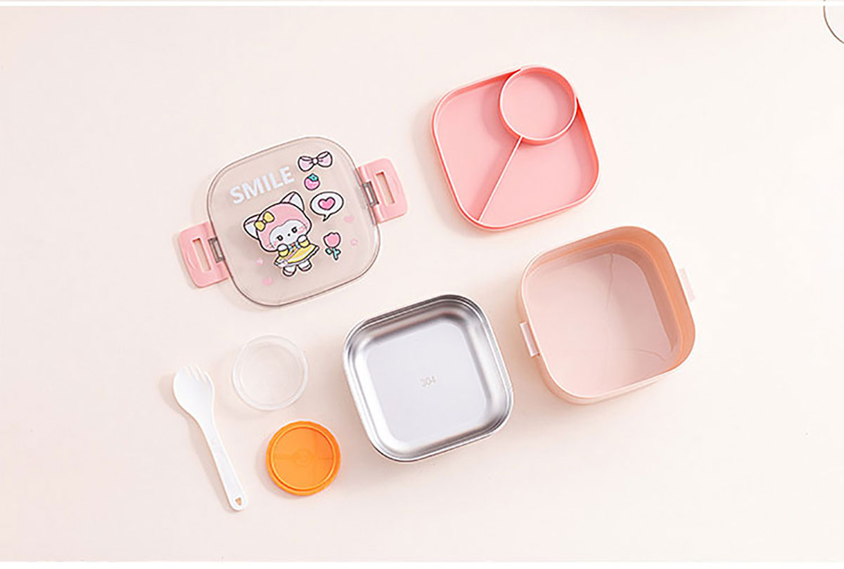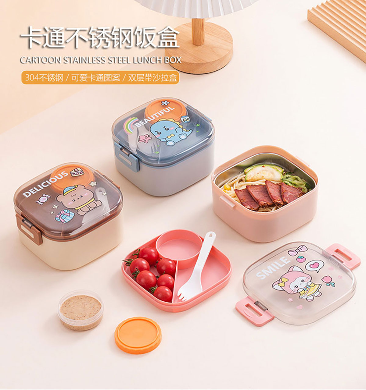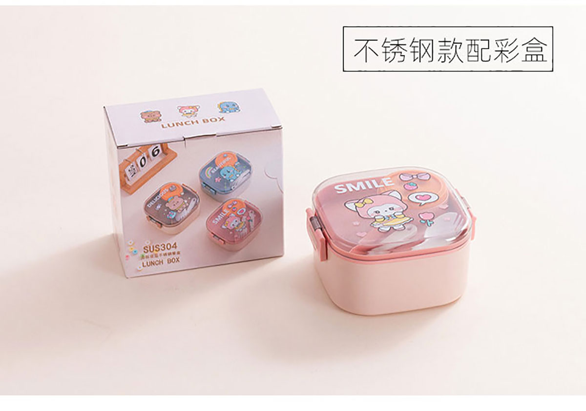 卡通方形不銹鋼飯盒(帶沙拉盒)