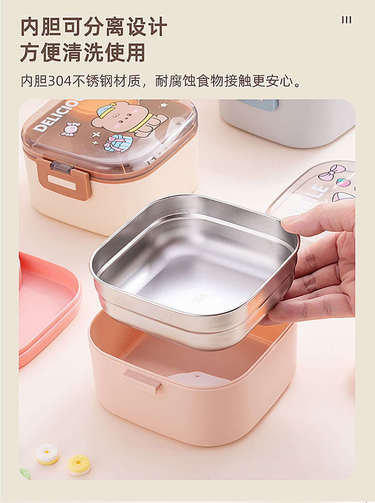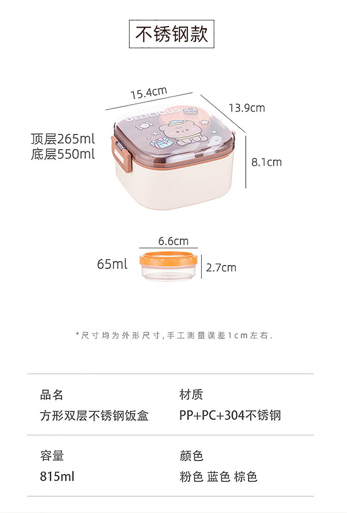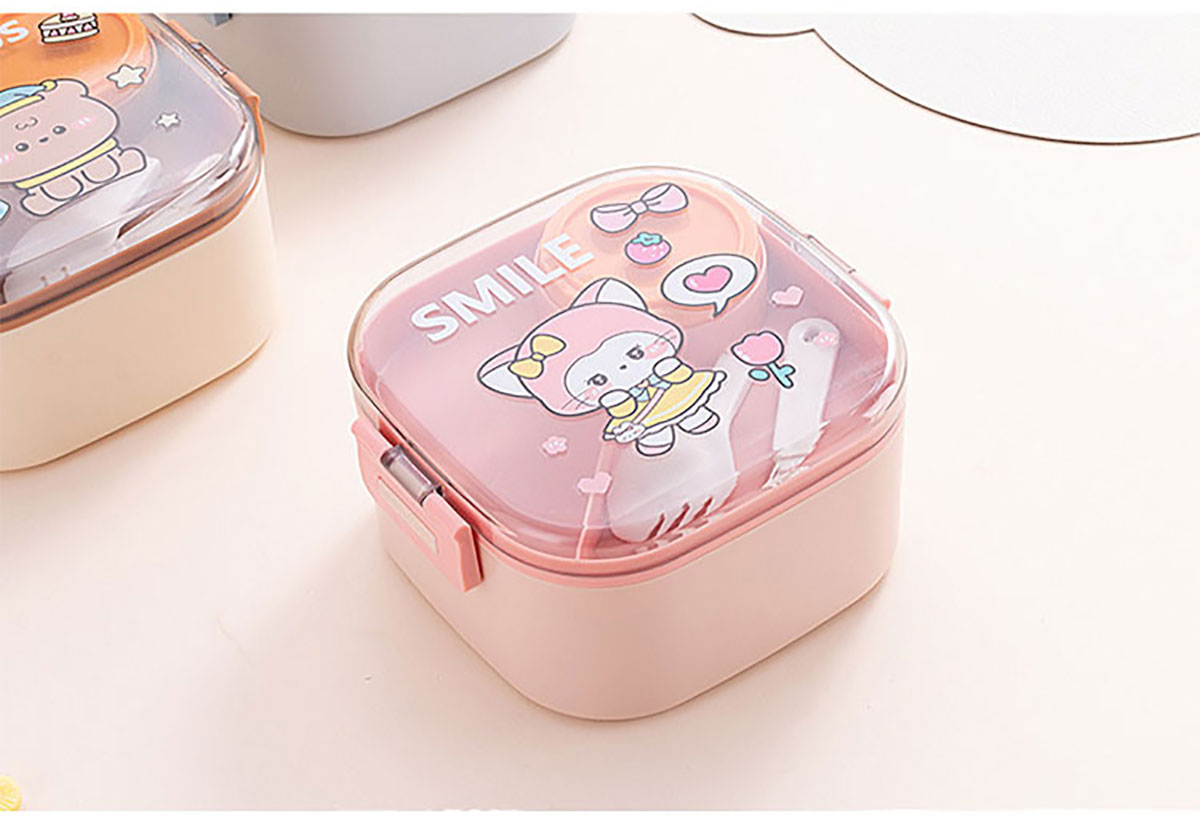 卡通方形不銹鋼飯盒(帶沙拉盒)