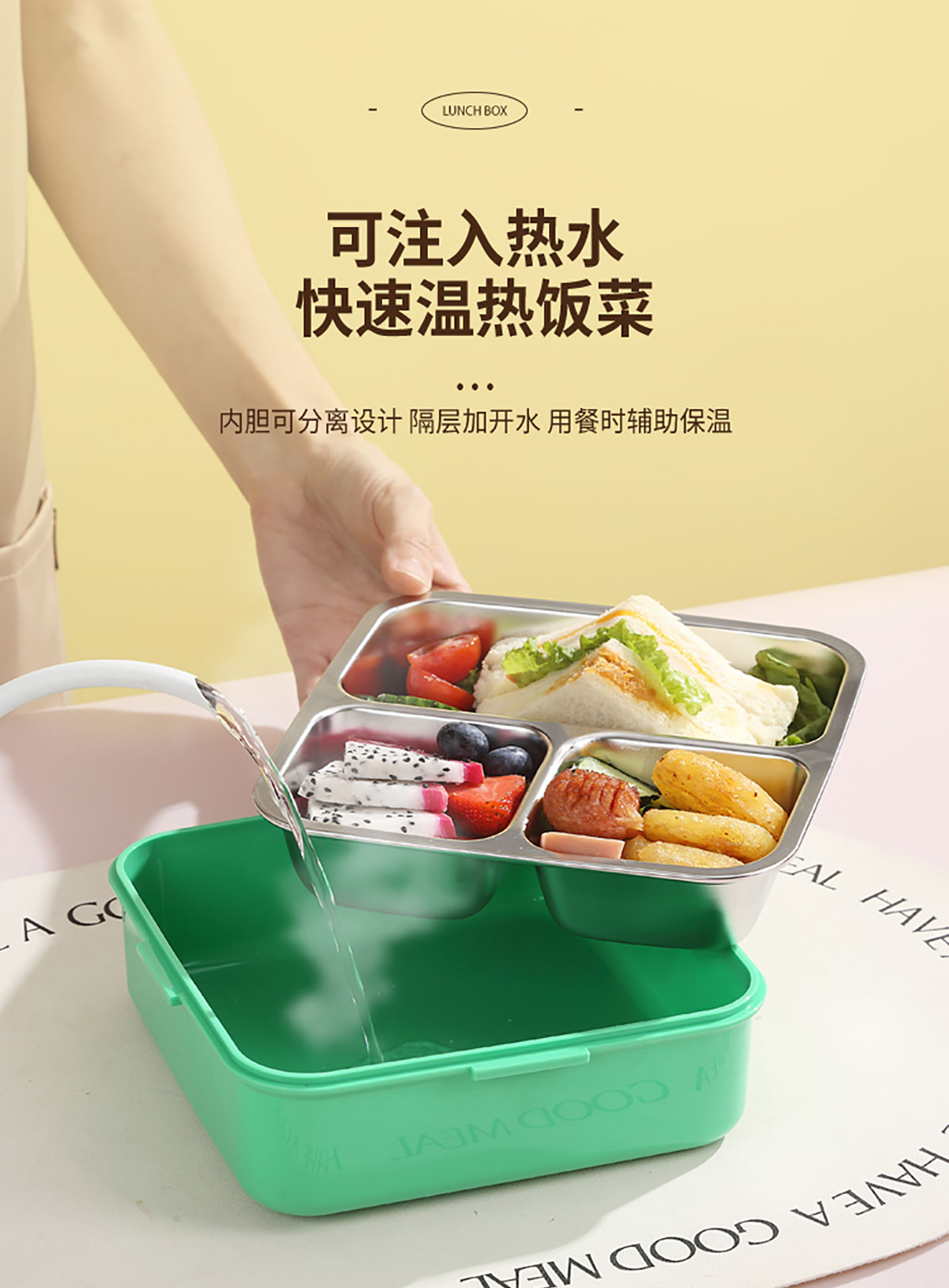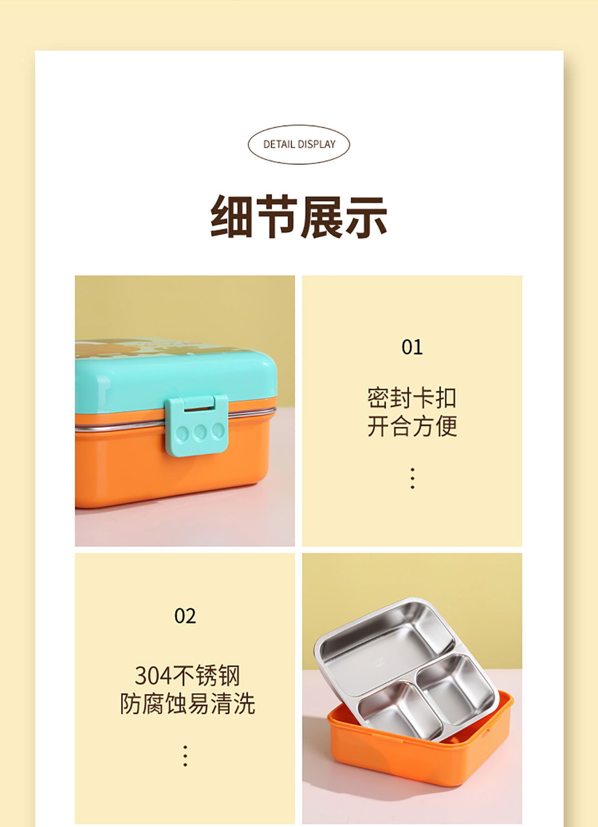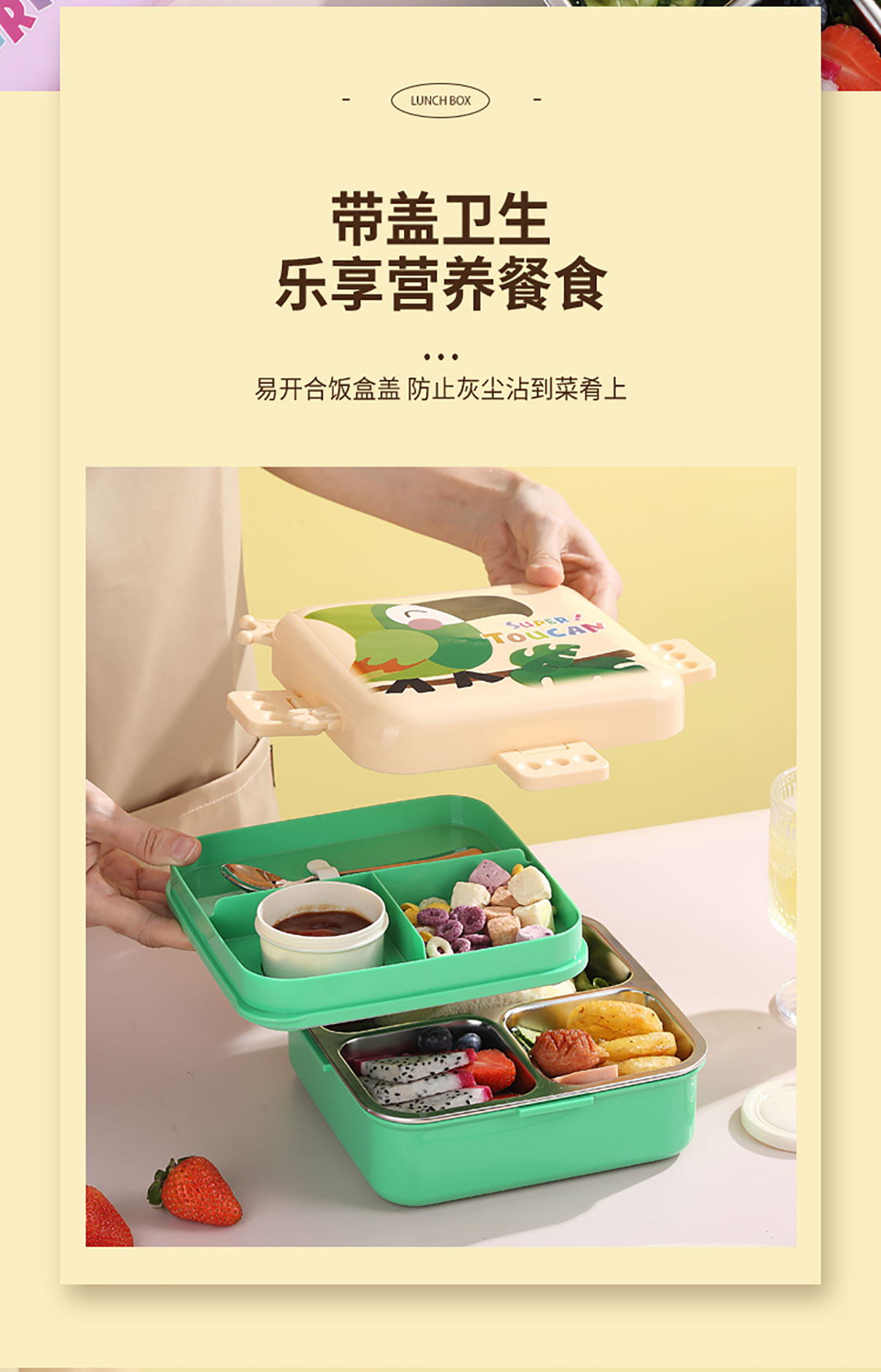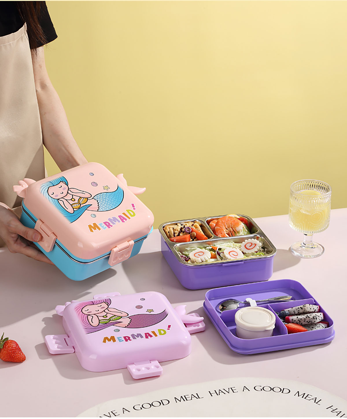 熊貓/大嘴鳥/獨(dú)角獸/美人魚正方形不銹鋼餐盒1120ml+70ml
