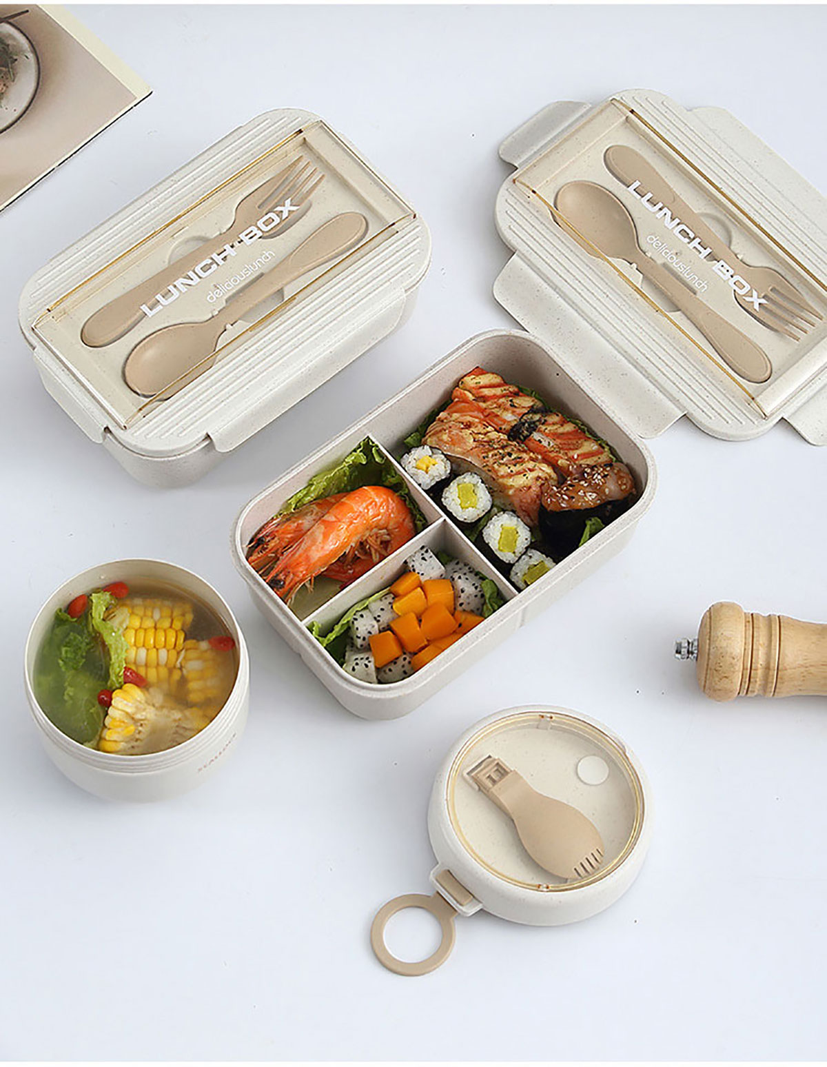 簡麥便當(dāng)盒飯盒/套裝(飯盒+水杯/飯盒+水杯+灰色餐袋/飯盒+燕麥杯+灰色餐袋)