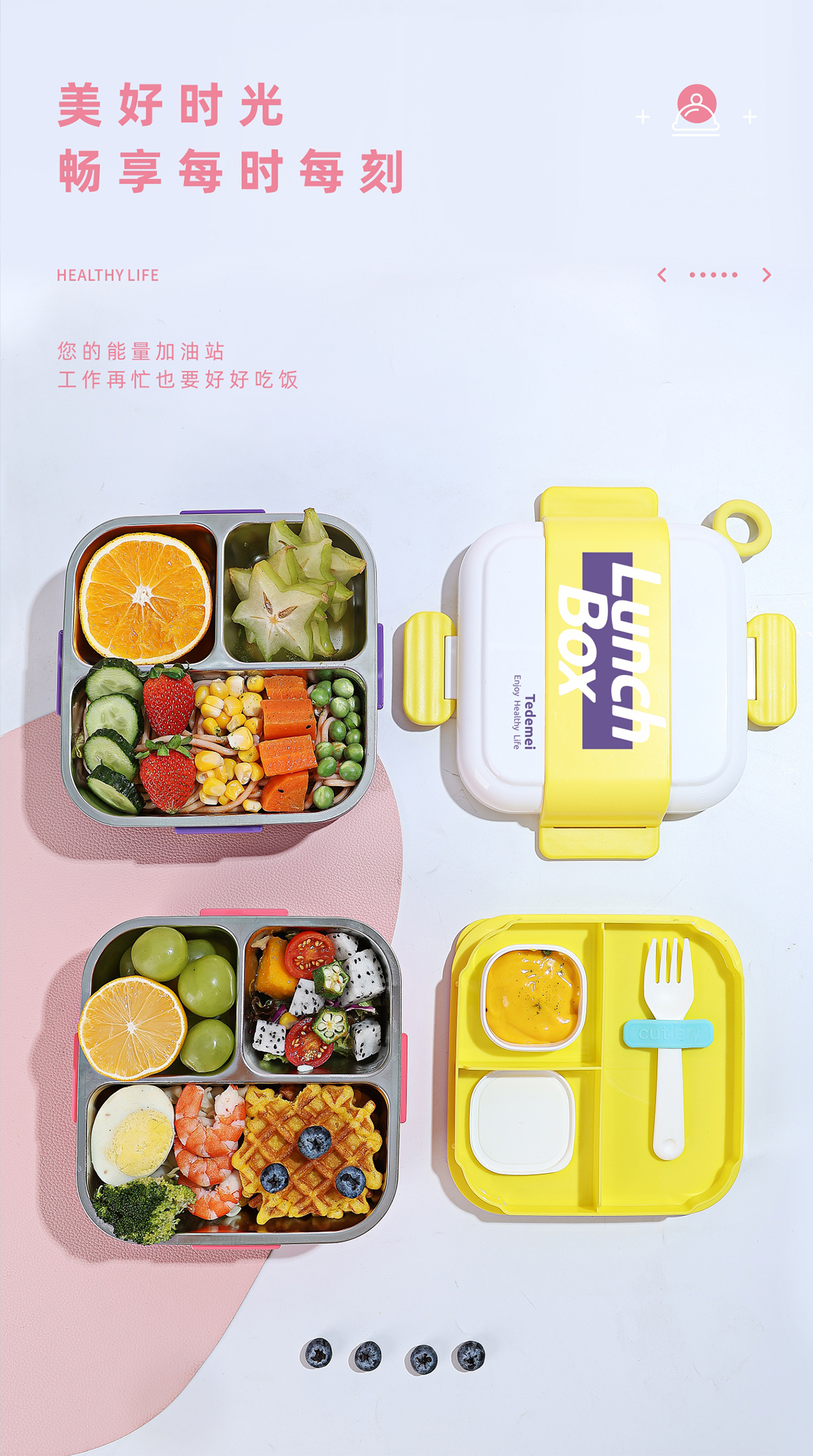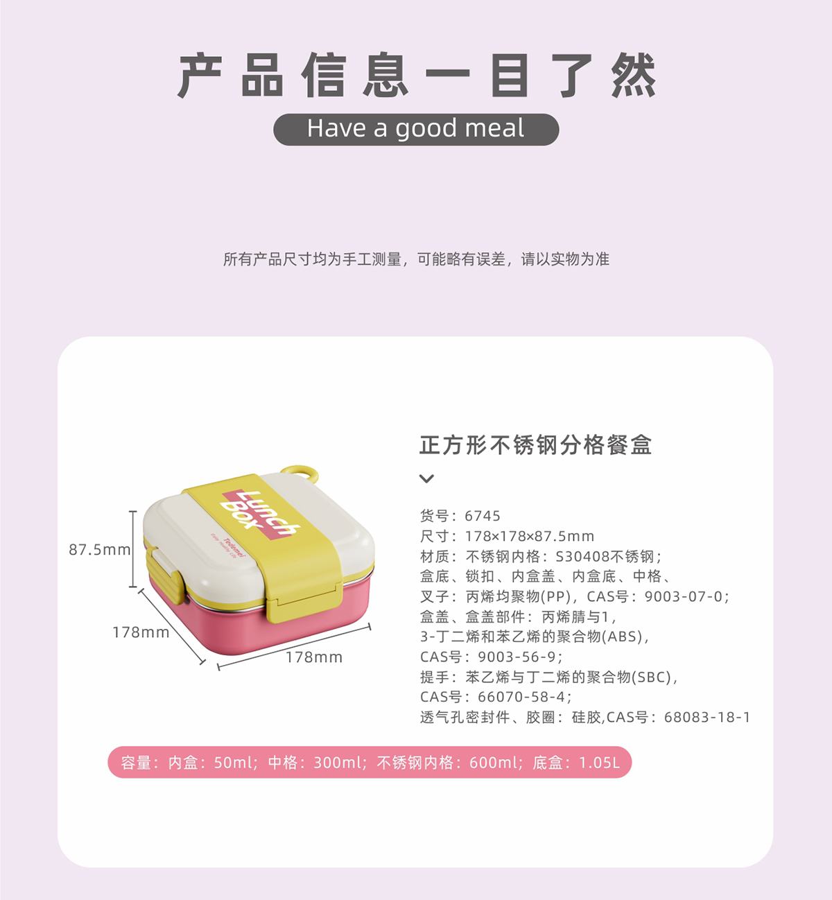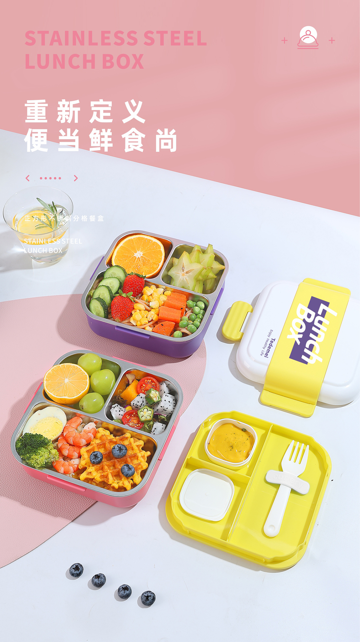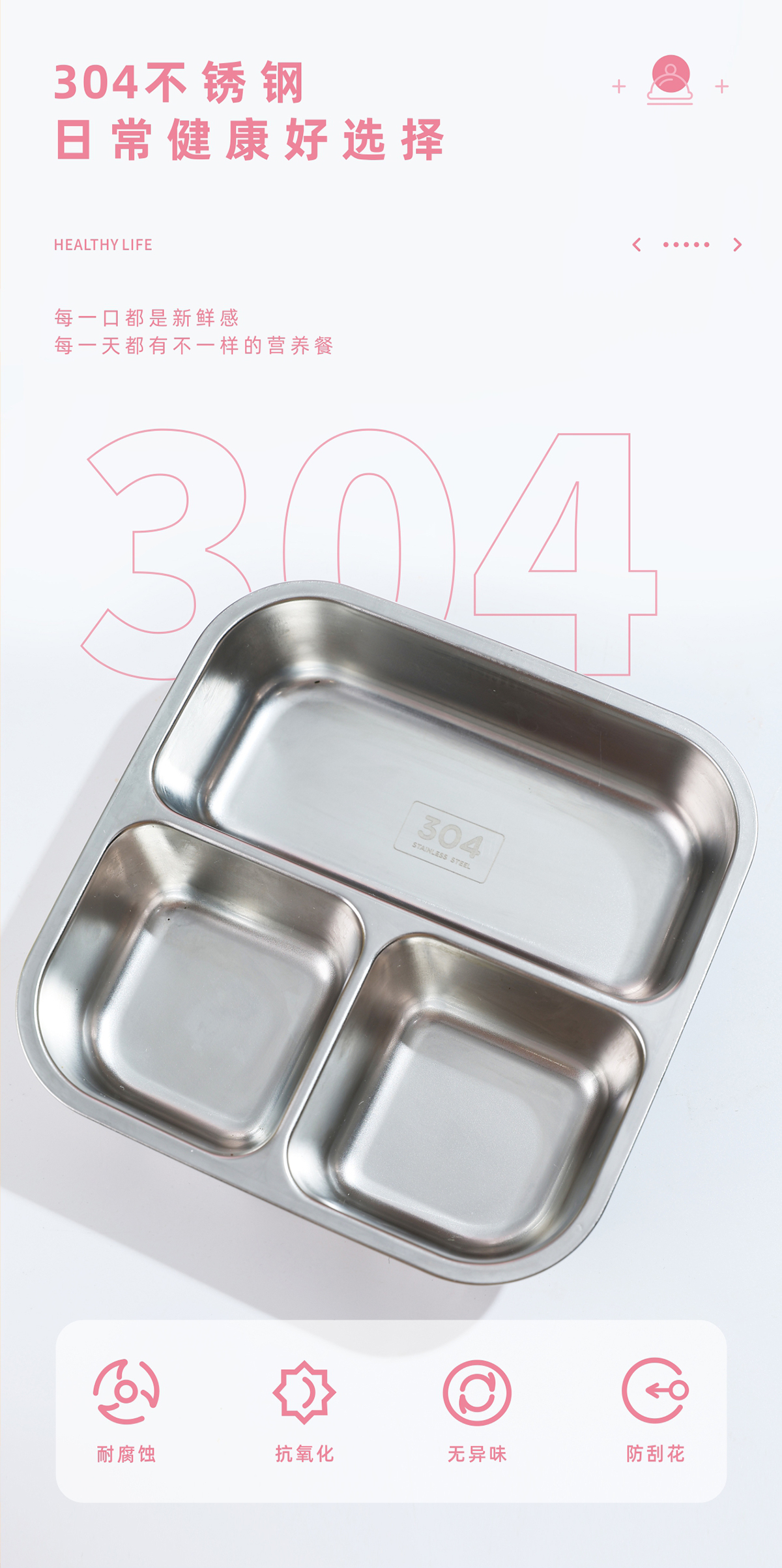正方形分格不銹鋼餐盒
