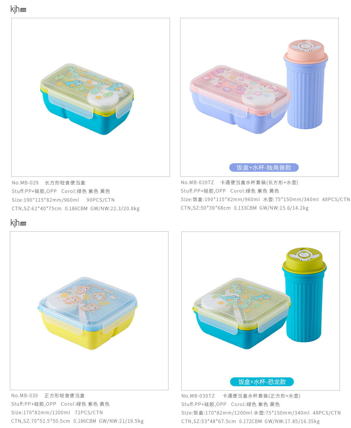 MB-029TZ(長(zhǎng)方形套裝):飯盒:190*115*82mm/960ml  水壺:75*150mm/340ml
