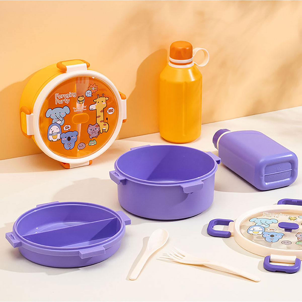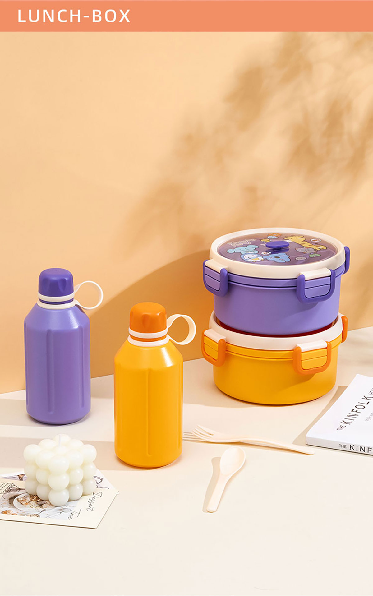 尚趣圓形雙層飯盒(1100ml)/+圓形/方形運動水壺(500ml)