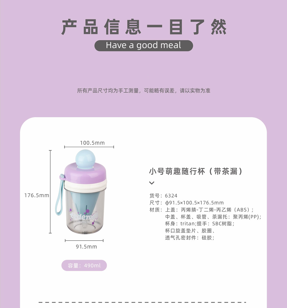 Size: HM-6324(小號):101*92*177mm/490ml