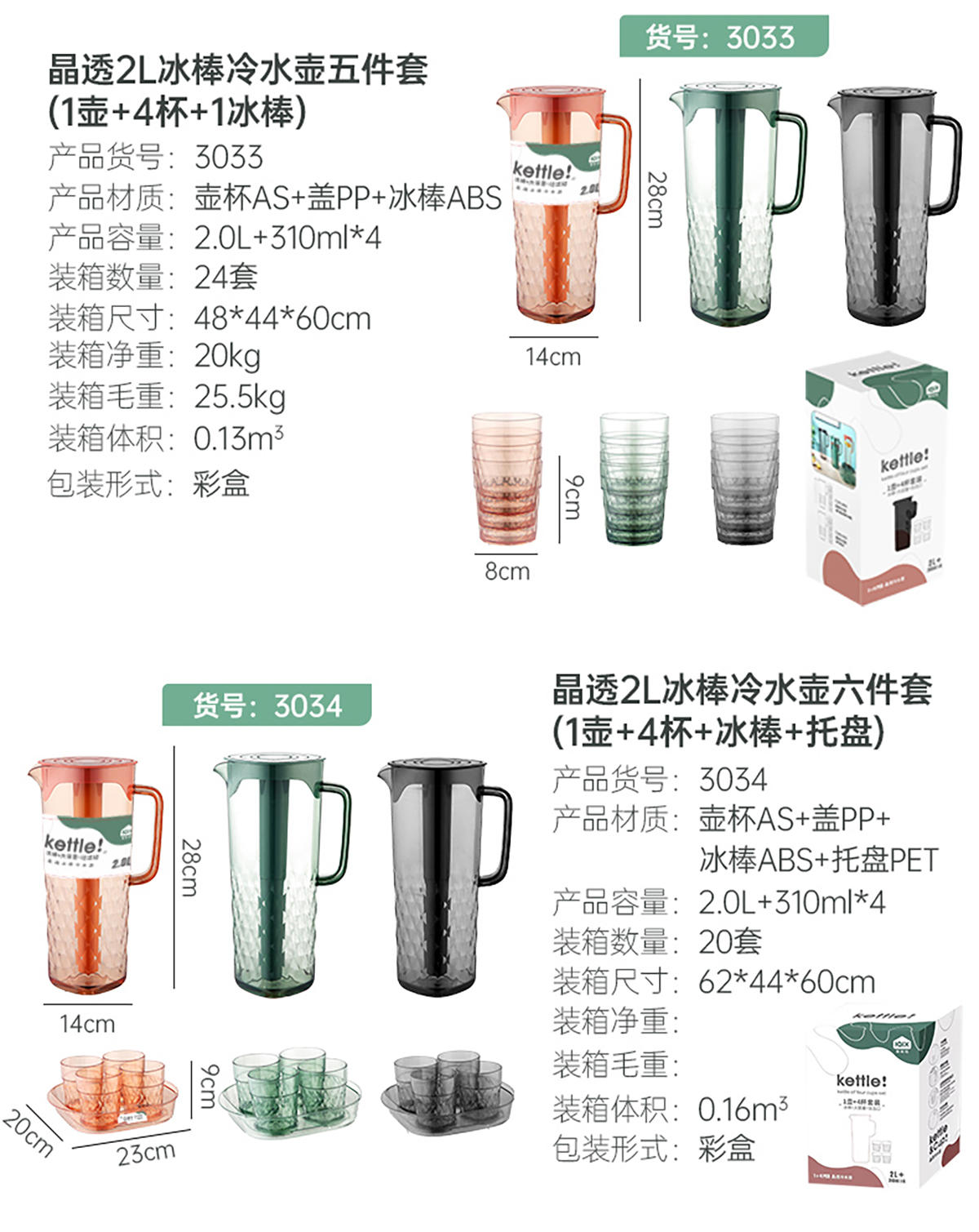 AQX-3033:水杯:長90*直徑寬80mm/水壺:長280*直徑寬140mm