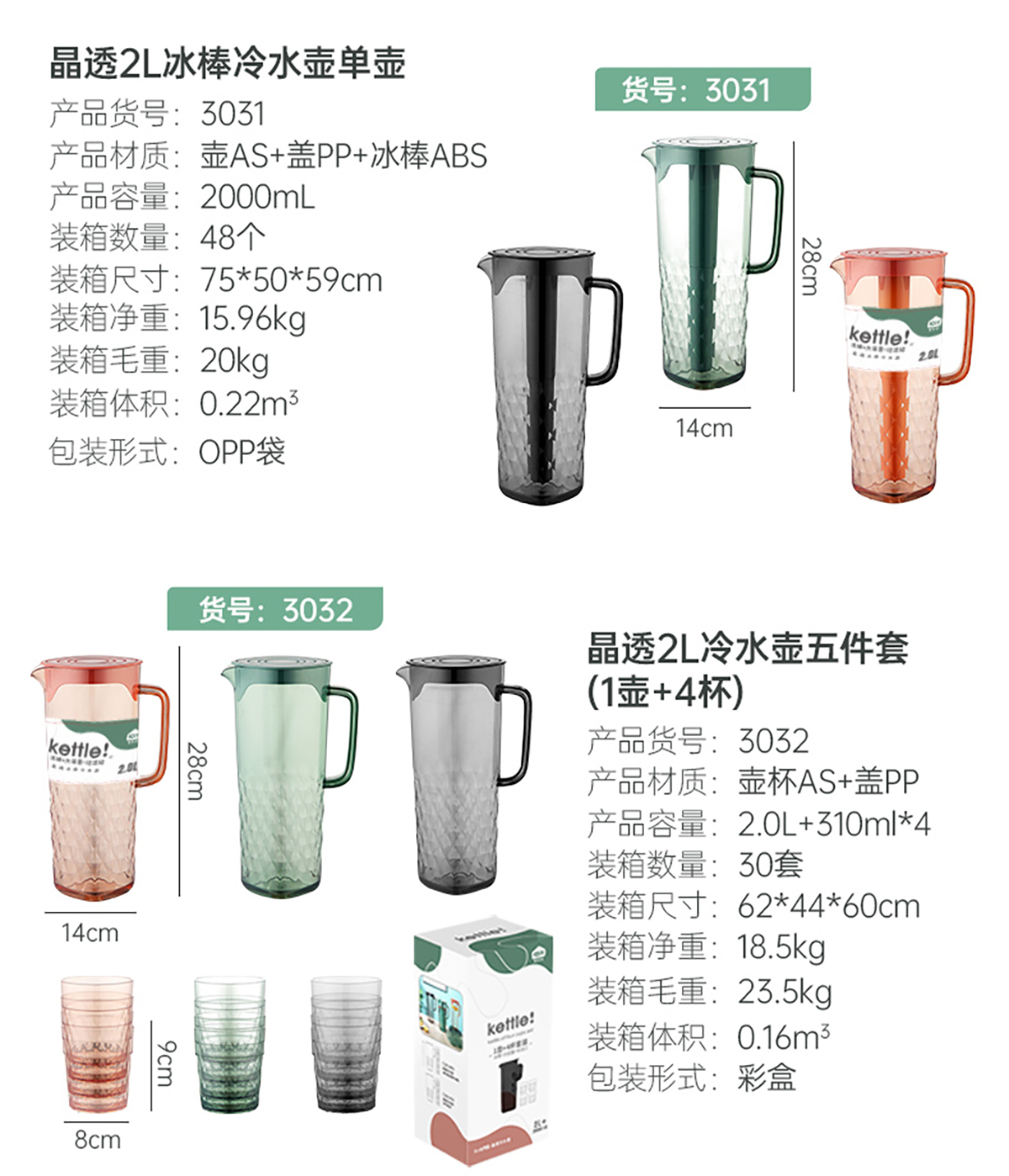 AQX-3032:水杯:長90*直徑寬80mm/水壺:長280*直徑寬140mm
